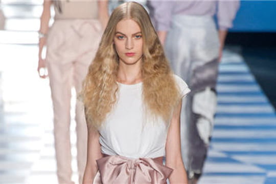 De jour comme à la nuit tombée, la femme Viktor & Rolf brillera d'élégance en toute circonstance cet été. Avec un vestiaire estival où dominent les robes et s'imposent longueur et drapés subtils, le duo de choc néerlandais promet de sublimer toutes les belles en quête de raffinement. Sages mais tout en sensualité, les silhouettes se parent de sublimes matières comme le tulle, la dentelle ou encore le satin, pour toujours plus de légèreté et de romantisme. La taille est le plus souvent ceinturée et les épaules marquées comme pour assurer un rendu juste et structuré. Dans ce dressing, on aime jouer sur les volumes et les proportions, mais aussi réinterpréter certains éléments emblématiques de la maison comme les nœuds – oversize – ou le motif foral venant se poser ça-et-là sur quelques pantalons, jupes ou chemisiers. Côté palette, on retient surtout de sublimes nuances de blanc, mais aussi teintes rose poudré, lavande et argent parfois rehaussées de touches orange ou bleu métallique. Les délicates des beaux jours n'omettront pas non plus de sortir sans minaudières et escarpins ornés de bijoux venant également compléter cette ligne d'un chic absolu. Prête à fouler le tapis et digne des plus grandes stars hollywoodiennes, la femme Viktor & Rolf est plus féminine et glamour que jamais.