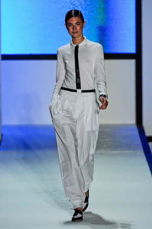 Dernière collection signée Christophe Lemaire pour la marque au crocodile avant de prendre la direction artistique du prêt-à-porter Hermès dès le printemps prochain. Du chic, de l'élégance, de l'authenticité, c'est ce que nous aura toujours offert le styliste français, depuis 2000 au sein de la maison de prêt-à-porter Lacoste. A l'image de cette dernière ligne plus pointue que jamais. On y retrouve les intemporels de la marque, tantôt graphiques en noir et blanc très 90's d'un chic extrême, tantôt hauts en couleurs pour un dressing vitaminé. Tuniques, pantalons taille haute immaculés, robes polo à fines rayures ou au col chemisier... La femme Lacoste sera la plus chic cet été, avec casquette, capeline ou visière vissée sur la tête. Un final en beauté pour le créateur qui aura clairement su "imposer son style dans le paysage du sportwear chic".