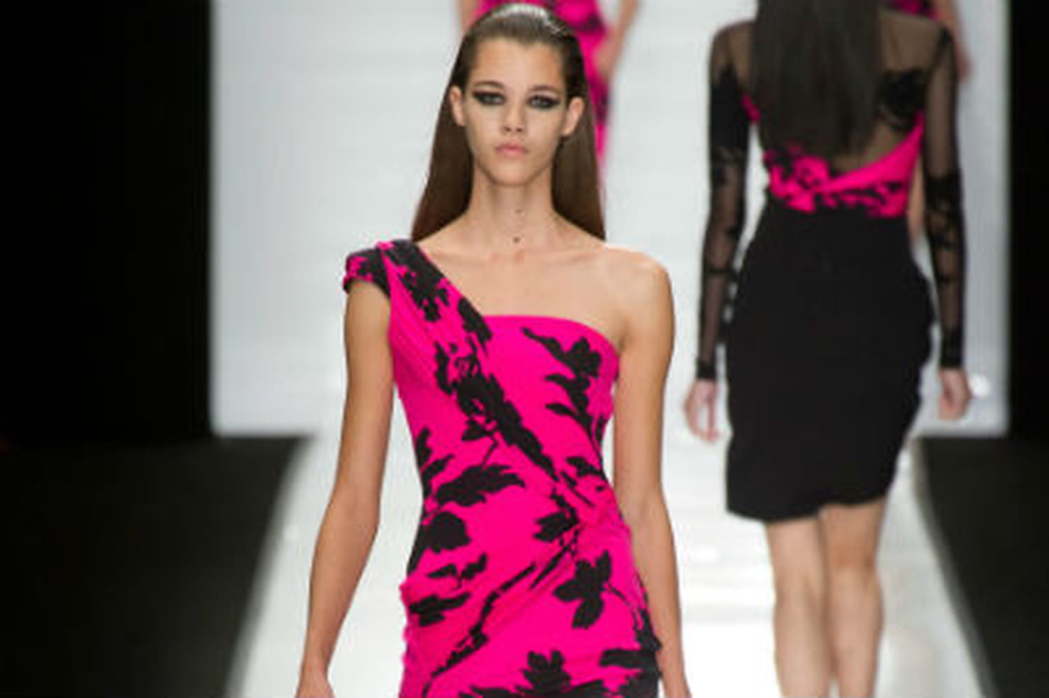 Si le pastel se pose en touches légères et douces sur quelques modèles du défilé, la couleur se fait surtout flamboyante entre un jaune vitaminé, un vert rafraîchissant ou un fuschia flamboyant. Une palette de couleurs sublimes qui vient réveiller et booster ces défilés printemps-été qui flirtent un peu trop avec le noir et les couleurs sombres pour la saison. Un noir qui n'est cependant pas forcément absent puisque synonyme de séduction, le maître-mot de cette collection. Il se pose en touches ou en contraste pour mieux faire ressortir les coloris vifs. Mais il prend aussi le monopole sur des modèles en cuir et en voile dont une transparence subtile accentue le charme énigmatique. Telle une Catwoman, la femme Léonard assume les formes moulantes mais aussi les longueurs et les fentes audacieuses. Dans des fourreaux spectaculaires, elle dévoile sa jambe jusqu'à l'aine. On ne peut d'ailleurs s'empêcher de penser aux robes féminines et glamour d'Elie Saab, un beau compliment pour un coup d'essai qui, on l'espère, sera transformé dans les collections à suivre.