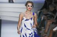 Marc Jacobs met le cap sur les années 1970 où l'ombre de Jodie Foster version "Taxi Driver" plane sur un défilé coloré. Tissus vaporeux, imprimés rétro et maille rayée animent un show haut en couleurs.
