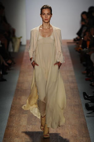 Oubliez les couleurs flashy ou criardes. Max Azria imagine un été où règne la douceur de vivre et un certain romantisme. Les coloris pastel se succèdent entre beige nacré, vert d'eau ou encore rose poudré. Les matières se font fluides pour des robes aériennes et agréables à porter dans la chaleur estivale. Même les vestes perdent de la rigueur pour un résultat qui n'en reste pas moin élégant. Mais si la simplicité semble être le mot d'ordre de ce défilé, les détails travaillés ne sont pas totalement oubliés. Les bretelles se croisent ou se font bijou, les tissus s'unissent dans un jeu de transparence et l'imprimé tie and dye renvoie à un souvenir hippy chic. Un doux rêve où prime la délicatesse et le bien-être et qui promet bien des plaisirs la saison prochaine.
