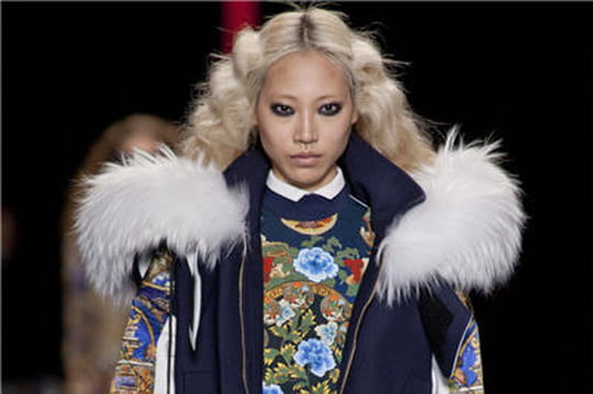A la fashion week de Milan, chez Just Cavalli, l'excès n'existe pas. L'explosion et la variété des motifs mêlés est l'incarnation la plus parfaite de la mode à l'italienne : une bonne dose d'audace alliée à un soupçon de bling-bling, le tout recouvert d'un vernis d'élégance inaltérable. Cette recette (plus très) secrète donne des tenues aux influences illimitées, entre codes du passé, esthétiques du présent, Orient et Occident. Pour la nouvelle collection prêt-à-porter automne-hiver 2013-2014, les silhouettes imaginées par Roberto Cavalli s'illustrent par cette synergie inédite. Les hauts, robes, combinaisons et manteaux sont ornés de fresques symétriques, représentant les plafonds opulents des palais italiens. Le bleu roi précieux évoque le chef d'œuvre de Michel Ange à la Chapelle Sixtine, tandis qu'on y distingue un temple bouddhiste. Ce tissu est une illusion d'optique qui fait voyager le regard jusqu'aux monuments ancestraux d'Asie à mesure que l'œil s'approche de sa trame. Le défilé passe et les influences extrême-orientales se font plus évidentes. Les roses imaginées sont remplacées par des nénuphars imprimés. Les estampes représentant les nuages habillent des jupes courtes.