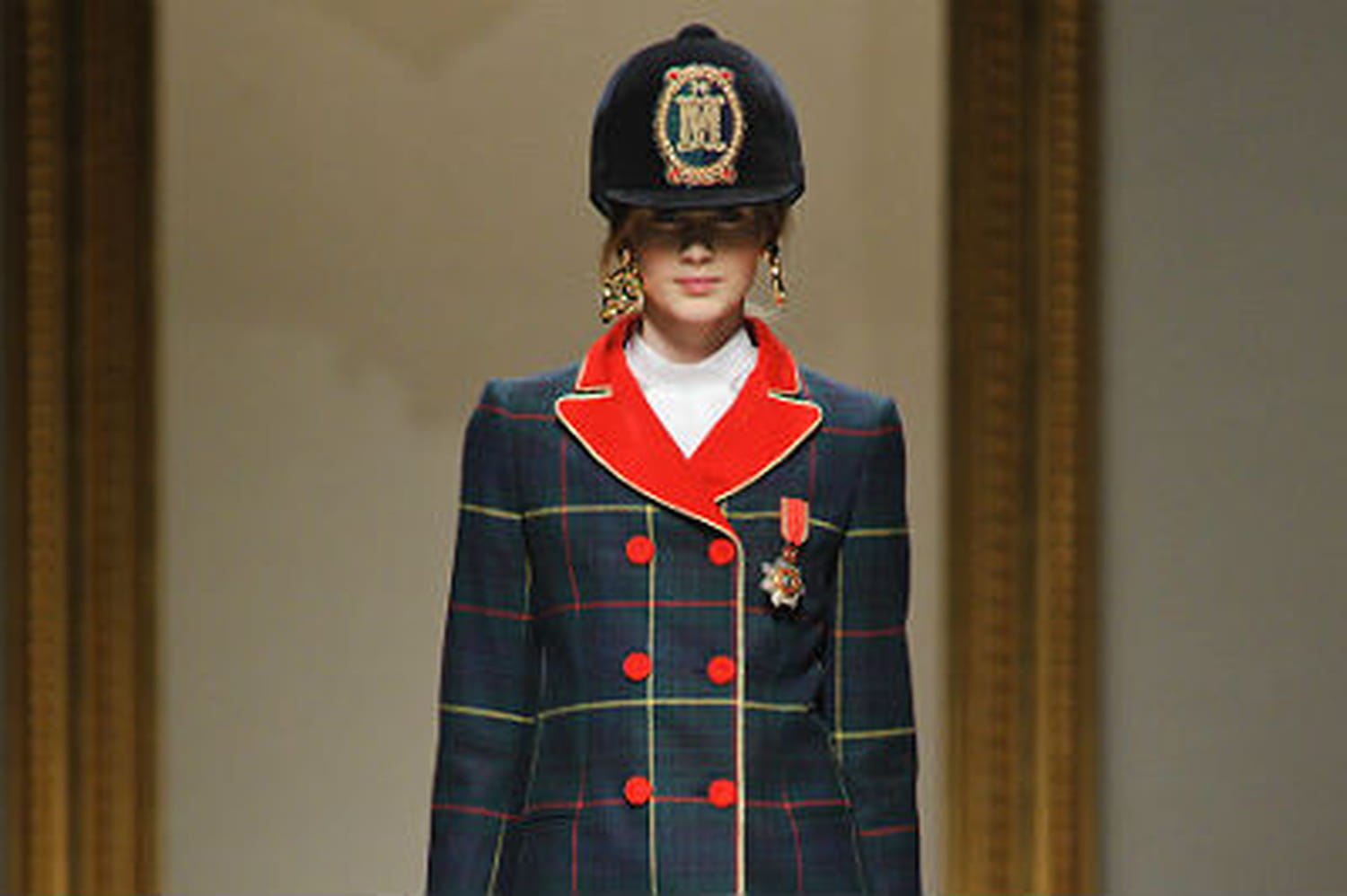 Chez Moschino, on brouille les pistes et les modeuses milanaises ont bien l'impression d'être encore à la fashion week de Londres. Mais qu'elles se rassurent, pas d'erreur dans le calendrier des défilés. La griffe italienne rend juste hommage à l'empire britannique en réinterprétant les codes de la mode anglaise. Dans la collection prêt-à-porter automne-hiver 2013-2014, Moschino décline l'écossais en l'imprimant sur des vestes façon chasse à courre et des manteaux avec cols en contraste mais aussi des gilets de costume. Les jupes se mettent au pli, clin d'oeil à leur cousin écossais, le fameux kilt. Même les accessoires rendent hommage au royaume de sa majesté Elizabeth avec des bombes évoquant les casques des policiers anglais et des calots bordés de tartan tout comme les sacs à main. Mais pas de rigueur guindée à l'heure du thé. Nous sommes à Milan et la flamboyance italienne revient au galop.