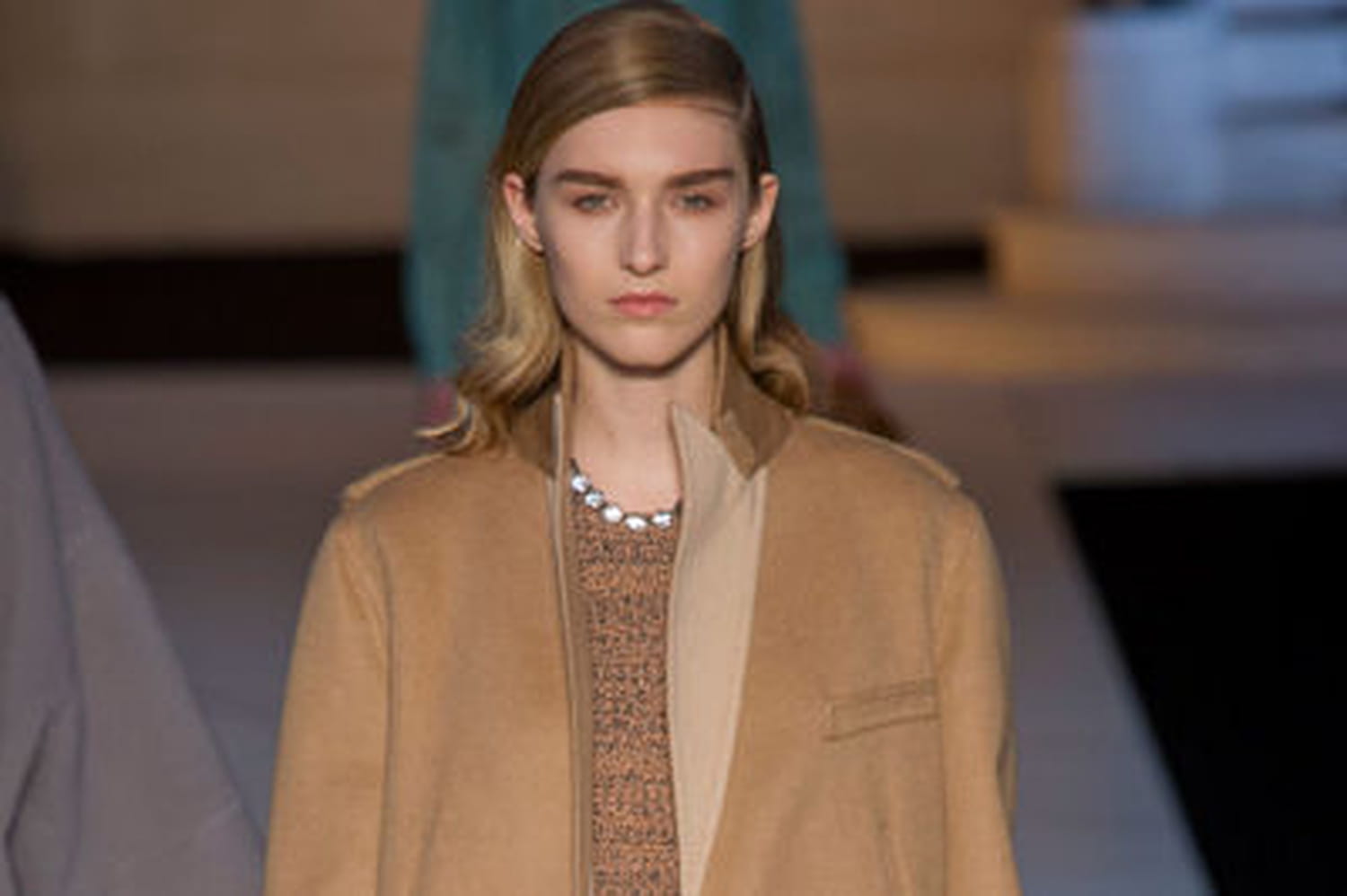 En haut de l'escalier de l'espace Cambon, des silhouettes apparaissent sur fond de musique au rythme nonchalant. Lentement, les mannequin descendent et évoluent sur le podium telles des icônes des années 1950. Les créations sont raffinées. Toujours dans des tons assez doux comme le gris, le beige et le kaki. Des couleurs sobres mais pas fades pour autant. Les tailleurs jupe se portent ceinturés à la taille tandis que la version pantalon est beaucoup plus décontractée avec des vestes amples aux lignes masculines.