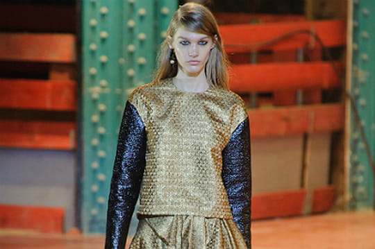 Autre incontournable de cette collection hivernale : les motifs. "Nous avons conçu tous les imprimés, élaboré toutes les techniques et les matières" confie le directeur artistique. Sous forme de lignes ou de triangles, arrondis, fleuris ou encore en relief imitant la peau d'un crocodile, les imprimés sont maîtres. Un signe en particulier revient tout au long du défilé, de façon parfois angoissante d'ailleurs : l'œil protecteur indissociable de l'Inde. Un symbole qui apporte un côté très spirituel à cette collection. Le dépaysement est aussi assuré par les couleurs éclatantes... Après une vague dorée, les tissus se parent de rouge et surtout de bleu. La palette se décline du marine au bleu électrique pour donner du peps à l'hiver. Tout comme nous, l'actrice américaine Jessica Alba, présente au premier rang, n'a pas dû être déçue du voyage !