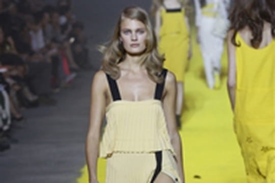 Très attendu, le show Sonia Rykiel prêt-à-porter printemps-été 2012 s'accompagnait de la nomination d'April Crichton en tant que directrice de la création du prêt-à-porter. Fil rouge de la collection, un trait noir s'imprime sur les vêtements qui explorent une palette qui oscille entre pastel, avec des tons pêche ou crème, et fluo. Le jaune est à l'honneur avec un podium façon Stabilo qui donne un côté arty au défilé. La collection elle, reste fidèle aux codes de la maison Rykiel même si la rayure se fait plus discrète qu'à son habitude. La Parisienne chic est en mode vacances et s'offre une garde-robe qui affiche douceur et fluidité. La maille, incontournable, se fait légère pour l'été. Les robes adoptent des coupes façon Années folles ou jouent la carte de l'imprimé fleuri ou arc-en-ciel. Le tailleur-pantalon prend de l'ampleur pour un style masculin-féminin. Sur une chanson très dynamique de Queen, les femmes Rykiel ont communiqué leur joie de vivre et leur élégance comme à leur habitude.
