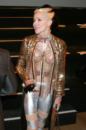 La célèbre héritière est une férue de mode et ne s'en cache pas. Daphne Guiness, qui était une grande fan du travail d'Alexander McQueen, semblait conquise par la collection prêt-à-porter automne-hiver 2012-2013 de Manish Arora pour la griffe Paco Rabanne. Brillant de mille feux dans sa veste à sequins dorés, son caleçon argenté façon Cinquième élément et son haut transparent; elle n'est pas passée inaperçue.