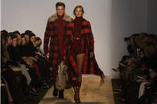 AFP - Michael Kors surfe sur le glamour des années 30 et sur l'allure sportive de Carole Lombard et Clark Gable pour livrer une collection hivernale faisant la part belle aux matières chaudes avec des plaids détournés en poncho, en jupe ou en manteau, de la grosse maille irlandaise qui se mélange à du satin et de la dentelle. Le créateur joue également les mixages avec une robe bi-matières, top en cuir lisse et jupe en gros tweed, ou robe en cuir avec interstices de dentelle. Pour le soir, le clinquant est de mise, avec des robes fourreau ou charleston entièrement brodées de paillettes car la femme Michael Kors passe ses vacances dans les stations chics du Colorado ou de Suisse.