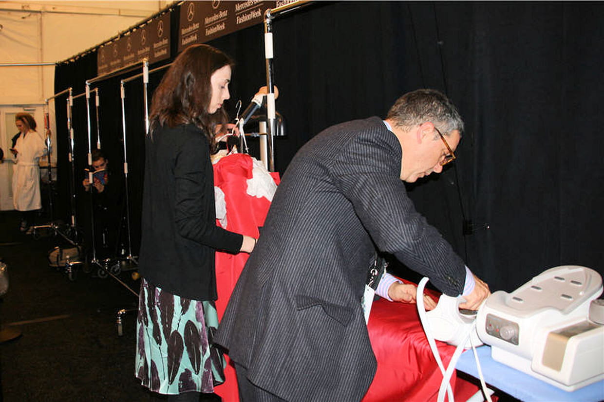 On l'aura compris, tout doit être parfait ! Quelques derniers petits coups de fer sur les sublimes tenues de Carolina Herrera s'imposent alors avant d'être passées par les mannequins.