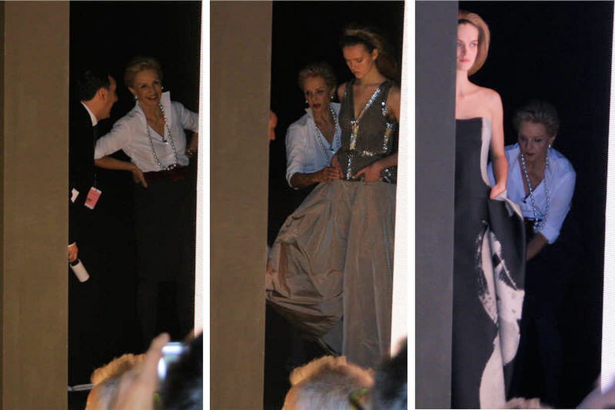 Mais avant... Dernier petit passage obligatoire par la créatrice qui prend soin de  tout vérifier avant de laisser filer les mannequins sur le podium. Go !