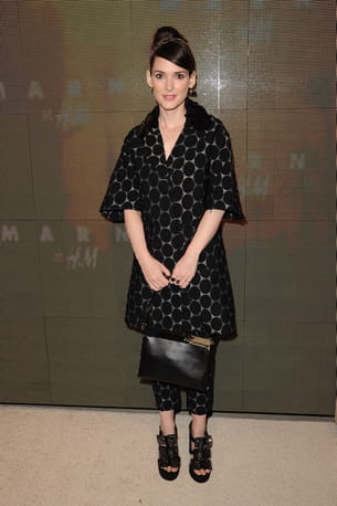 Trop longtemps absente de nos écrans, l'actrice de Beetle juice et d'Edouard aux mains d'argent a fait un retour remarqué l'année dernière dans Black Swan. Winona Ryder, qui avait été un peu blacklistée à Hollywood après avoir volé plusieurs fois dans des magasins, connaît donc un retour en grâce. Et on ne peut que s'en réjouir quand on voit le joli look qu'elle affiche. Evidemment, elle porte les modèles de la collection : "Je suis une grande fan de Marni et je le suis depuis plusieurs années. J'aime l'idée de prendre des griffes de luxe et de les rendre accessibles et abordables avec H&M". On aime l'esprit fifities de cet ensemble pantalon qu'elle mixe parfaitement avec des sandales plus modernes et légèrement rock. Quand au choix de ce chignon haut, il est parfait !