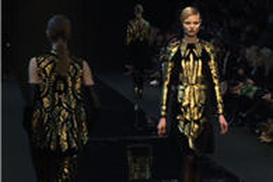 Chez Guy Laroche, Marcel Marongiu a tout compris de l'équation que chaque femme a à résoudre quotidiennement : comment être élégante tout en adoptant un vestiaire adapté à son emploi du temps ? Pour sa collection prêt-à-porter automne-hiver 2012-2013, le créateur livre une vision de la femme active et sophistiquée. Perchée sur des lowboots et des bottes au talon travaillé, elle assume du matin jusqu'au soir sa féminité. La jupe (sublime en version cuir verni) descend au genou mais les tops affichent une transparence audacieuse. La fourrure se greffe au cuir pour réchauffer les tenues en cas d'avis de grand froid. Les sequins tantôt scintillants tantôt retournés pour un effet dévoré renforcent la modernité d'une robe ou d'un top. La maille s'invite aussi dans ce show par le biais de pulls façon cotte de maille ou en sous-pulls portés à même la poitrine. La palette de couleurs au départ assez timide dans un duo de noir et blanc s'épanouit en un orange automnal et un jaune aux accents dorés. L'occasion d'introduire les tenues de velours rebrodés de fils d'or et à l'effet kaléidoscope.