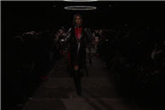 AFP - Dans l'obscurité, le son de chevaux galopant annonçait déjà, l'esprit équestre d'un défilé mené au pas de course. Jodhpurs, gilets lacés, jupettes, gants jusqu'aux épaules, bottes à jambières et du cuir, beaucoup de cuir, mêlé à de la soie, de la laine, du poulain et de la fourrure. Un glamour très sombre, renforcé par les yeux soulignés de noir des mannequins et ponctué par des touches de caramel et surtout de rouge. Sur la doublure d'un manteau kimono en cuir glacé, sur une queue-de-pie en fourrure, le carmin explose sur une jupe en soie plissée et sur des hauts de lingerie, laissant la place, pour quelques instant, à du violet et à de l'orange profonds sur des combinaisons délicates brodées de jais. Une approche très sexy de la cavalière moderne.