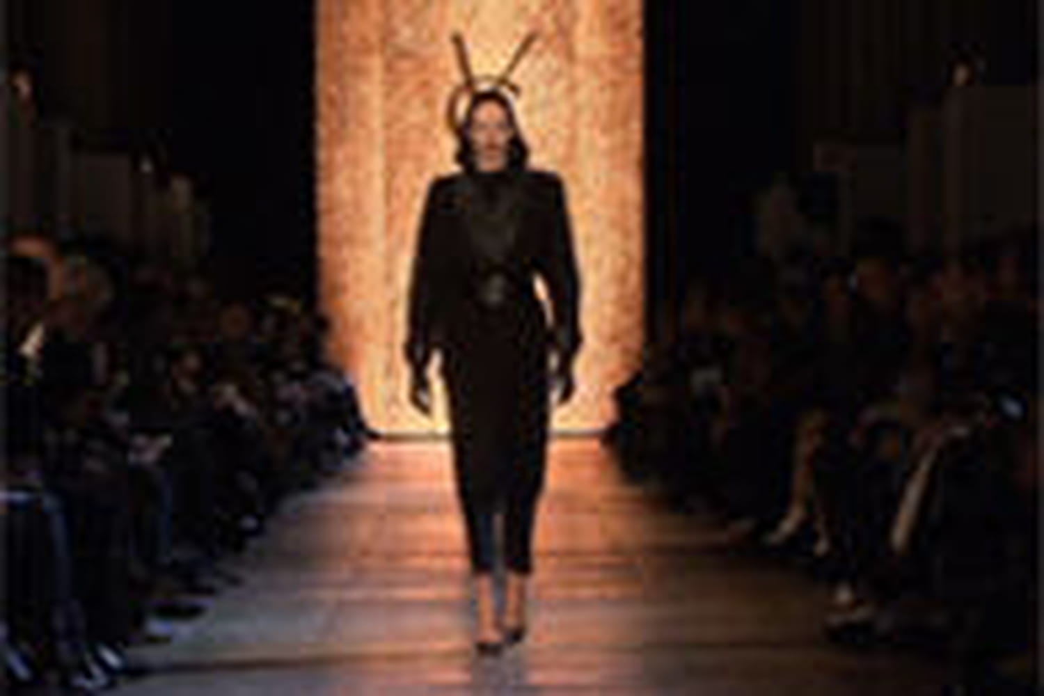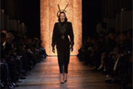 AFP - C'est en souriant, mais avec une collection au glamour sombre que Stefano Pilati tire sa révérence chez Yves Saint Laurent. Taille serrée dans un manteau à revers en cuir et capuche fine sur la tête, lèvres violines, le premier passage annonce un défilé de dominatrices sensuelles. Cette impression se confirme avec des robes ajourées en côte de maille, des combinaisons dos-nu et des tailleurs aux épaules appuyées. La palette est très sombre à l'exception d'une robe et d'un tailleur blancs qui rappellent le fil conducteur du défilé : le lys blanc. Une fleur symbole de pureté et d'innocence, mais aussi de tentation ou d'amour ambigu. Et de gloire. Merci et bravo Mr Pilati !