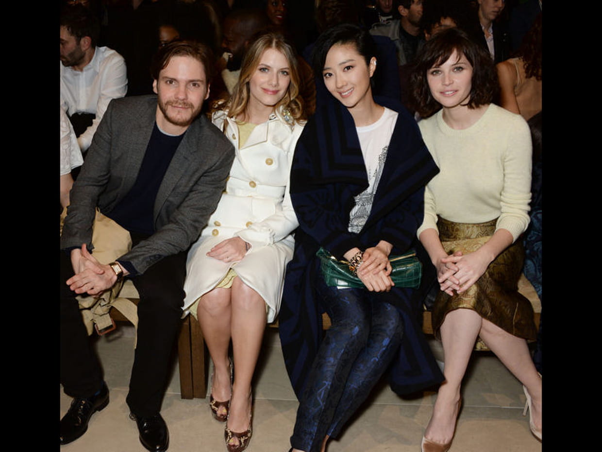 Daniel Brühl, l'acteur de "Good Bye, Lenin !" et de "Joyeux Noël", avait de bien jolies voisines au défilé Burberry Prorsum. A commencer par la française Mélanie Laurent et les actrices Guey Lun-Mei et Felicity Jones.
