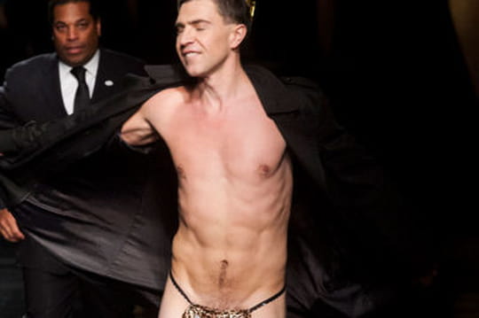 Les journalistes et autres invités ne s'attendaient sûrement pas à un show pareil. Et pourtant, le défilé Prabal Gurung de la fashion week new-yorkaise a été marqué par une surprise de taille (et pas forcément souhaitée par la griffe). Alors que les modèles défilaient sur le podium, nous faisant rêver avec la collection du designer népalais, un tout autre genre de "mannequin" a perturbé l'événement. Un homme en string léopard, chaussettes rouges, couronne dorée et cape en soie s'est jeté sur la scène. Sa prestation s'est achevée sur une "course poursuite" avec les vigiles. Un spectacle qui a amusé la galerie pendant quelques minutes tandis que les tops (les vrais) seraient restés imperturbables. Mais qui est ce trouble-fête? Il s'appelle Vitalii Sediuk, il est ukrainien et excepté son côté "excentrique", c'est aussi un journaliste habitué des tapis rouges. Il a d'ailleurs un historique atypique concernant ces grands événements, notamment quand il se jette sur ses stars préférées pour leur prouver son affection. En 2012, lors de la première de Men In Black 3, il a sauté sur Will Smith pour lui faire un câlin et ne l'a plus lâché. L'acteur en rigole plus tard sur le plateau de David Letterman. Quelques temps après, c'est le playboy de Very Bad Trip, Bradley Cooper, qu'il prend comme cible aux SAG Awards avec une démonstration du même genre. Et les stars féminines n'ont pas à être jalouses puisque Adèle a aussi été approchée par notre journaliste intrépide aux Grammy Awards 2013. Quand la chanteuse se rend sur la scène pour récupérer son prix, ce monsieur monte carrément avec elle et tente de l'approcher quand Jennifer Lopez intervient et le renvoie. Enfin, il a remis ça le 6 février dernier avec Leonardo Dicaprio, en s'agenouillant au niveau de ses parties intimes lors de la projection du Loup de Wall Street (cf. la vidéo ci-dessous). Une chose est sûre, cet Ukrainien n'a pas froid aux yeux...
