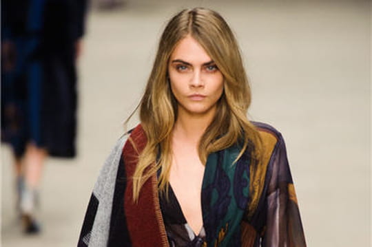Autre importance de ce vestiaire résolument féminin : l'omniprésence de l'accessoire. Essential. Tout d'abord, le it bag "Bloomsbury"... Décliné à l'infini, il se retrouve à toutes les mains, of course, tandis que les ceintures – fines ou plus larges - viennent serrer les tailles avec chic. Et ce n'est pas fini. Le foulard quant à lui est pris dans le manteau, et le "poncho couverture" graphique (piqué au vestiaire automne-hiver 2014-2015 de l'homme) se retrouve lui posé comme avec nonchalance sur une épaule. Et qui de mieux que la star de ce défilé, Cara Delevingne, pour illustrer la tendance ? A a fin du show, la belle arpente alors le catwalk avec un modèle brodé de ses initiales : really ? Pas de jalouses, car toutes les femmes Burberry de l'hiver prochain pourront avoir le leur, histoire de s'emmitoufler avec style. Une volonté du créateur qui va vers plus de "personnalisation", a-t-il confié. Si c'est ça c'est pas la classe... à l'anglaise !
