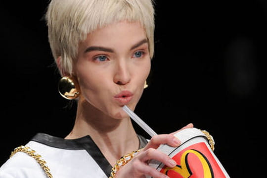 La nouvelle collection Moschino prend l'hiver avec humour sous l'impulsion de son nouveau directeur artistique Jeremy Scott. Le géant américain du burger, notamment, se voit détourné avec originalité. Sacs "Happy meal" ou boissons, vêtements Bob l'éponge ou encore robes spectaculaires façon friandises... Autant de créations décalées qui nous font craquer pour l'univers coloré de la marque italienne. La preuve en images !