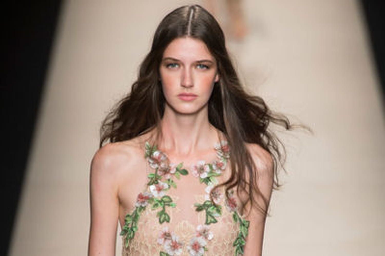 Chez Alberta Ferretti, les sylphides affichent un esprit hippie-chic et nous envoûtent en douceur et avec charme pour le printemps-été 2015.