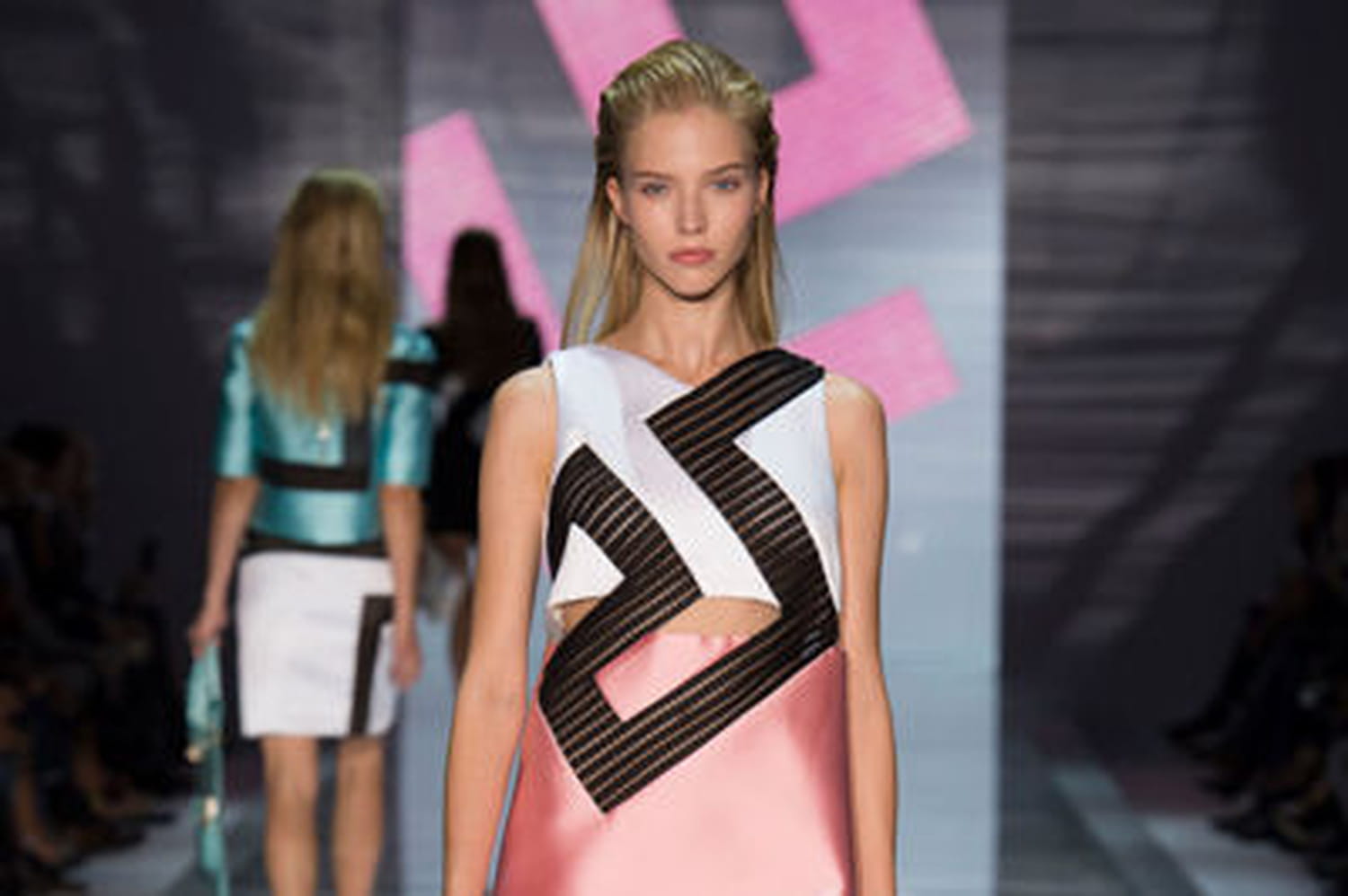 Le défilé Versace printemps-été 2015 a réussi à surprendre le monde de la mode. Donatella opère en effet un virage assez radical. Pour beaucoup de modeuses, la maison italienne rime avec extrême sensualité. Cette dernière n'est pas boudée mais revêt de nouveaux atours aux accents très graphiques. Les premières silhouettes s'inscrivent dans l'héritage de Gianni avec la fameuses frise grecque qui s'affiche sur les ceintures des ensembles noirs et blancs. Puis la collection s'affranchit de ses influences récurrentes pour s'offrir une variation graphique des plus libératrices. Le mot minimaliste vient immédiatement à l'esprit tant cet exercice géométrique et arty rompt avec les habitudes "versacesques". Et pourtant, il serait trompeur puisque là encore, la créatrice mise sur les détails, les tissus, les effets, les imprimés... Autant d'atouts qui insufflent un vent de modernité et d'audace à cette collection réjouissante. Le jeu de transparence impose la sensualité chère à la griffe et s'amuse à réiventer les longueurs. Une robe s'offre ainsi le luxe (et l'originalité) d'être à la fois courte... et son contraire en arrivant jusqu'aux chevilles. L'asymétrie se met aussi au service du défilé pour réinventer les jupes et sublimer les jambes interminables des mannequins. Un effet perforé, voire grillagé, dévoile des coloris pastel pour une allure futuriste. Le cuir est lui aussi travaillé, ajouré pour s'adapter à la douceur de l'été. Les oeillets participent à ce jeu d'effets visuels et assurent un esprit tout aussi rétro-féuturiste. Enfin, les "party girls arty" brillent le soir avec une combinaison de tissus pailletés. Un dernier coup d'éclat pour achever un défilé particulièrement inspiré.
