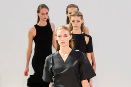 Lors de la fashion week parisienne, Céline nous a dévoilé une collection plus que troublante. Gardant ses repères graphiques, Phoebe Philo taille le vêtement d'une structure impeccable. Dessinées, les lignes du buste sont droites, découpées avec une géométrie minutieuse. Col rond, V, tailleur ou encore anguleux, il respecte l'élégance minimaliste de la maison. C'est à mi-cuisse que le volume se crée dans une harmonie parfaite. Franges, volants, matières fluides, animent le bas de la silhouette. Un contraste qui donne de la souplesse à la démarche. Les détails viennent perturber l'équilibre du vêtement. Une bande en guise de manche encercle le coude, des lunes découpées sur les hanches, rappellent les robes Courrèges des années 60 et laissent entrevoir la chair. Tandis que les emmanchures s'amusent à se découvrir ou à se vêtir d'une matière différente. La taille peut être soulignée d'une ceinture ou disparaître complètement sous le vêtement. Mais la clé de ce défilé, ce ne sont pas les motifs fleuris ou les tons neutres, ponctués de couleurs vives si chères à la créatrice, mais plutôt ses inspirations aux vêtements de combat. Manteaux cousus de bandes irisées au niveau de la taille, à l'image des armures, sac en forme de bouclier attenant au bras, tops noirs aux surpiqûres rouges, rappelant les vestes d'officier, ou encore les tenues de judoka et les robes aux emmanchures folles, façon camisoles de force. En opposition à tant de fougue, des robes esprit flamenco ou bohémien, viennent quand même apporter un peu de douceur et féminité. La griffe aurait-elle une envie de révolte ?