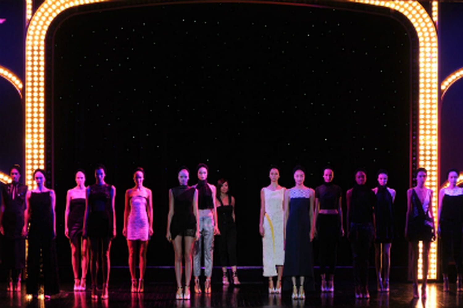 Rendez-vous à 14h au Lido de Paris pour le défilé Fatima Lopes. Le ton est donné dans ce merveilleux décor d'époque. En hommage au monde de la nuit et des danseuses, les silhouettes intègrent les formes des costumes de cabaret. Si le thème est bien présent, il l'est par touches, par formes géométriques. Les dos sont mis à nu par des tops noués au cou et aux bras et apportent une allure ultra-sensuelle. Les filles qui défilent sont tout aussi désirables qu'élégantes, aussi belles que spirituelles. En parallèle, Fatima Lopes opère un va-et-vient entre vestiaire féminin et masculin par la réinvention d'un smoking taillé très près du corps. Outre cela, c'est le travail porté sur les formes qui prévaut et souligne l'expérience acquise de la designer. On retrouve donc l'expertise de la Portugaise à travers la superposition des matières, semblables à des arcs-en-ciel de motifs. Les robes, les blouses oversize tapissent leurs pans de pois tandis que les longues robes vestales se voient ajourées de stries. Semblable à de l'art abstrait, chaque mouvement du tissu est représenté par un motif ou une forme. Une robe ainsi normalement drapée s'illustre par des points alignés, tels des coups de crayons sur la toile. La couleur, elle, réussit à s'infiltrer le long des jambes et vitamine les cols d'orange et les talons de jaune. Artiste avant tout, Fatima Lopes impose une leçon de style où on s'exprime son savoir-faire. C'est dans cette rigueur des formes et cette opulence de matières que jaillit la singularité et la beauté de la collection où s'entrecroisent divers univers, celui de la danse, de la féminité et de l'art.