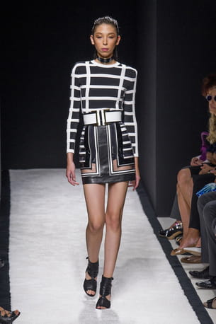 Balmain construit toute sa dernière collection en quadrillage et rayures bien droites sur des coupes strictes. L’esprit graphique n’a jamais vraiment quitté les podiums et s’affirme pour l'été en imposantes formes géométriques. Repérée sur plusieurs défilés, le duo noir blanc revient éternellement mais peut se décliner en couleurs pour moins de dureté. L’avantage du graphique est qu’il structure une silhouette et fait mal aux yeux lorsque la tenue bouge trop vite. Alors cette saison, tenez-vous à carreau !