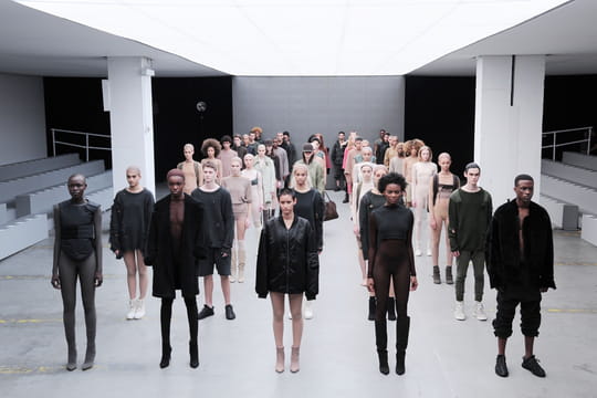Pour son défilé, l’époux de Kim Kardashian a bien entendu vu les choses en grand : il a fait appel à l’artiste contemporaine Vanessa Beecroft, qui a effectué une performance pendant que les modèles présentaient la collection au gré du son des cors. Kanye a mis à contribution sa belle-famille puisque sa belle-sœur, Kylie Jenner, a ouvert le show. Le chanteur a dévoilé ses sneakers, les Yeezy 750 Boost, limitées à 3000 exemplaires. Les pièces de prêt-à-porter, qui étaient évidemment d’inspiration streetwear, flirtaient avec le minimalisme et les années 90. Au programme : des brassières, des tops façon seconde peau, des leggings un poil transparents, mais aussi des hoodies, des pulls dévorés et des vestes bombers que l’on adopterait volontiers ; le tout dans des teintes plutôt sobres.