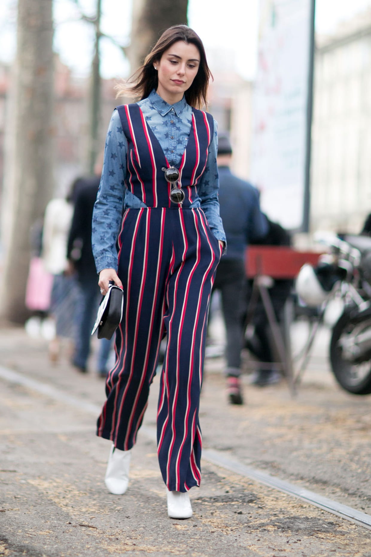 Street style à Milan : la combinaison rayée