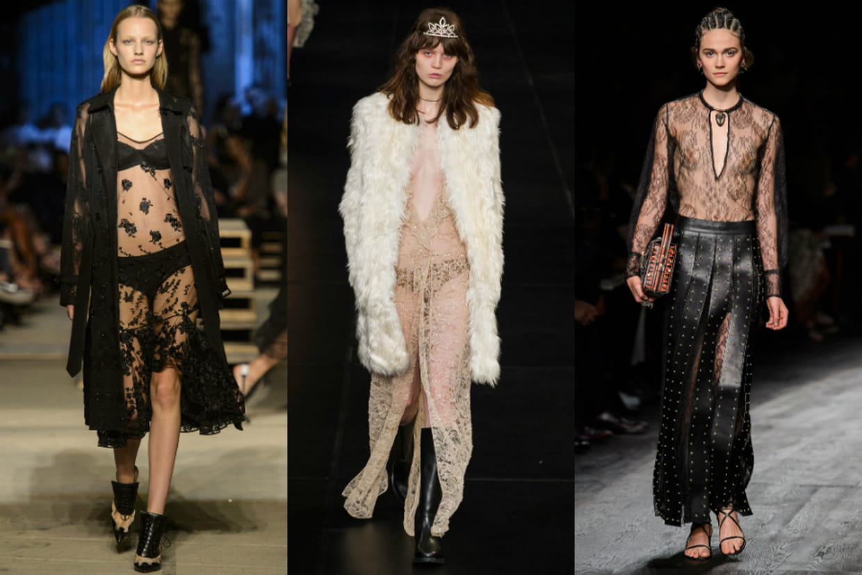 De gauche à droite : défilés Givenchy, Saint Laurent et Valentino prêt-à-porter printemps-été 2016.