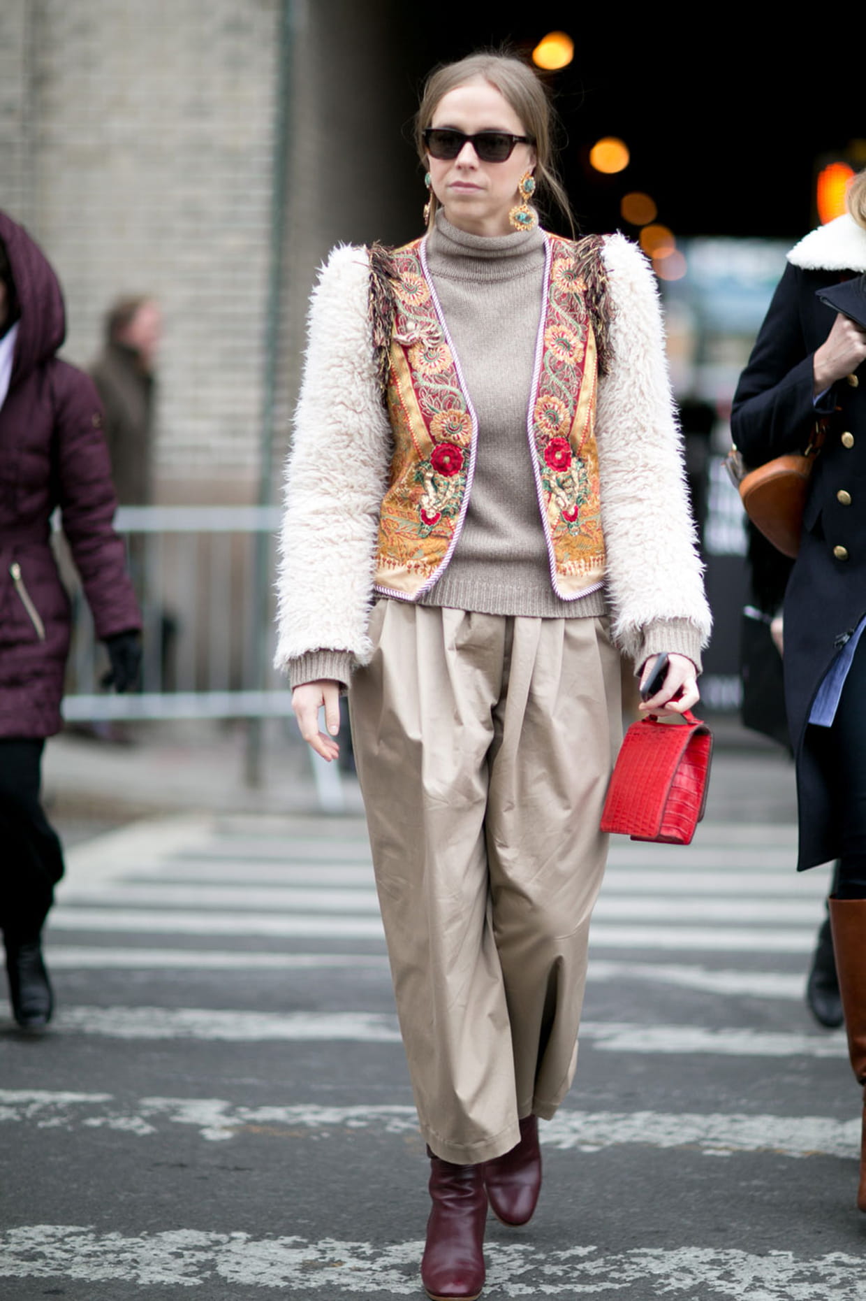 Le veston folklorique à la sortie des défilés prêt-à-porter automne-hiver 2016-2017 de New York