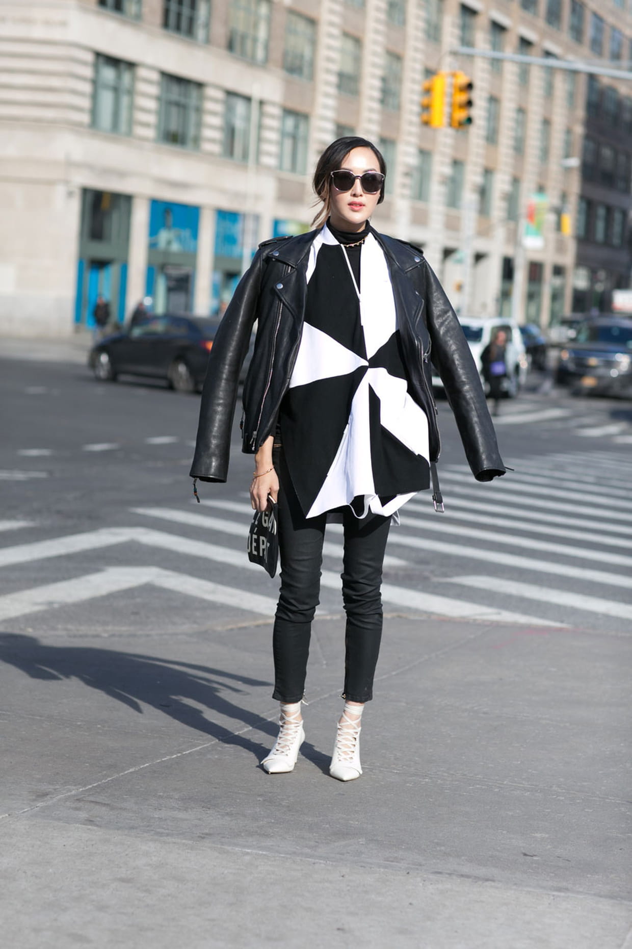 Le black and white à la sortie des défilés prêt-à-porter automne-hiver 2016-2017 de New York