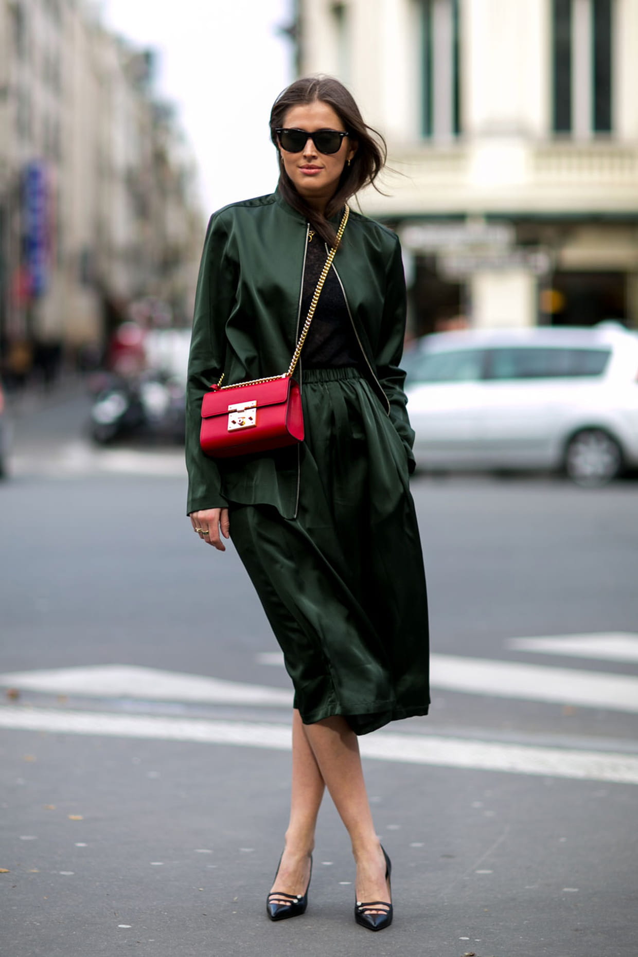 Le satin forêt à la sortie des défilés prêt-à-porter automne-hiver 2016-2017 de Paris
