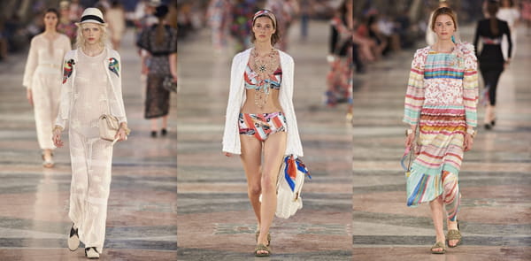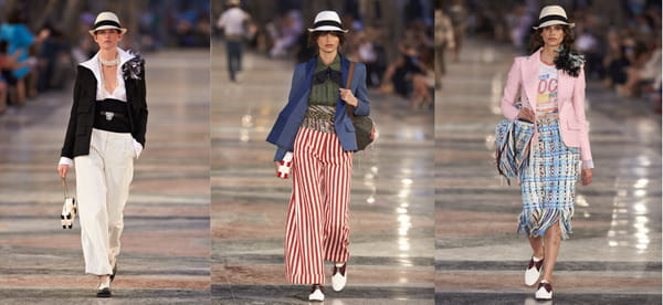 Stella Tennant, allure froide, élégance d'antan et androgynie effrontée, pose le décor en ouvrant le show. Le noir et blanc et de mise pour cette immersion en douceur qui se régale des codes de l'élégance années 50, vestes et chemises, pantalon à pinces amples et panama soulignant un regard mystérieux. Rapidement, la féminité reprends le dessus dans des pans de tulle volatile et des chemisiers et jupes en transparence. Palmes et autres feuillages annoncent un nouveau virage plus organique, dans des matières tissées, aux tons nature et aux silhouettes contemporaines. La femme Chanel à Cuba évolue avec le temps et s'illumine en couleurs. Bientôt, les références à la charmante désuétude du lieu se multiplient. T-shirts imprimés de réclames passées, motifs voitures américaines cubaines, jeans délavés et cuirs usés dessinent un vestiaire douceâtre aux accents pop. L'homme, très présent lors du show, la joue aussi chic ou urbain, classique ou contemporain. Mais il laisse place au final à la féminité sophistiquée de Chanel version Karl Lagerfeld, dans un bouquet de petites robes colorées précieuses qui font son succès. Une croisière dans le temps et sous le soleil pour laquelle on embarque volontiers.