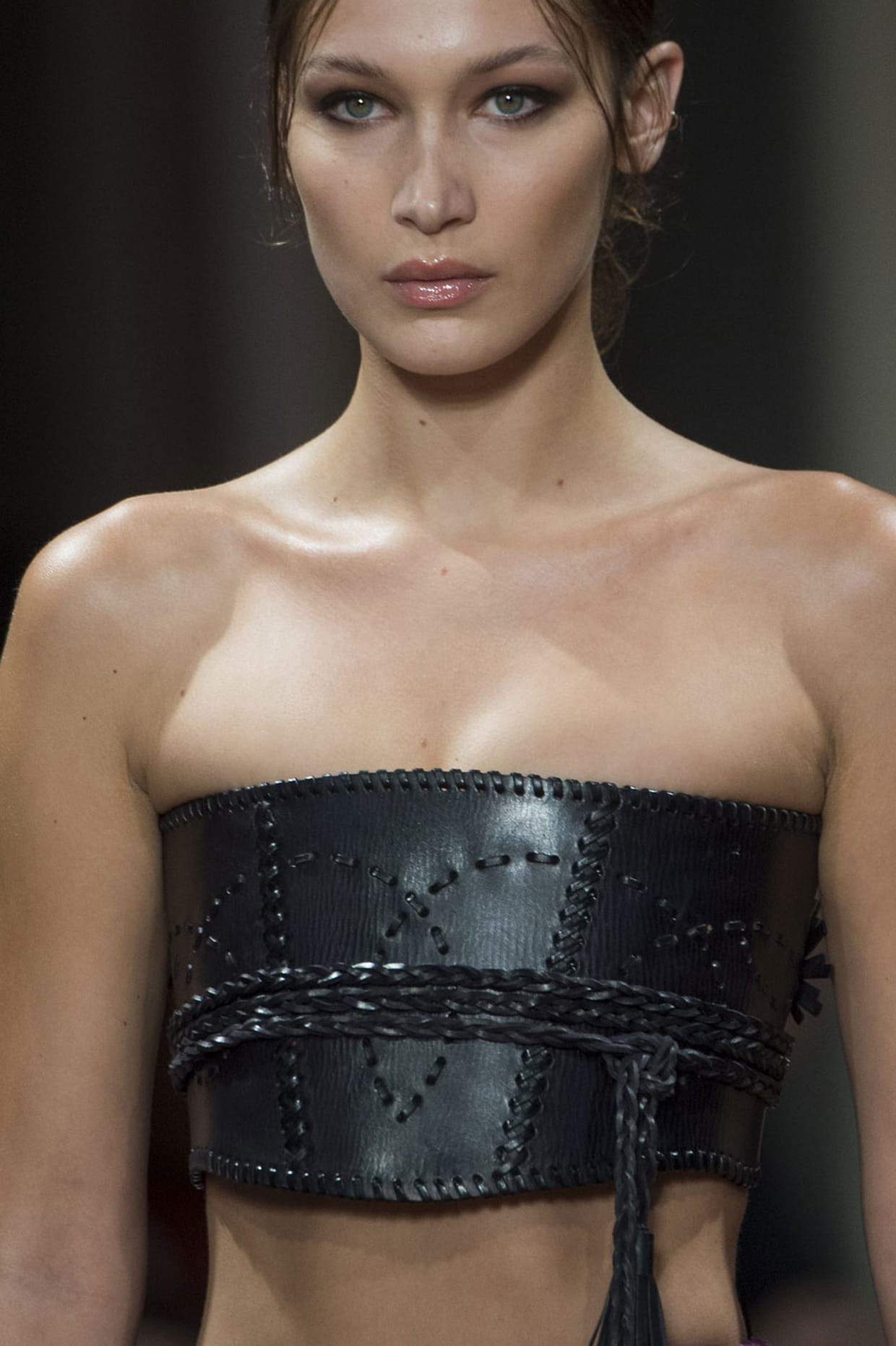 La brassière bandeau en cuir du défilé Alberta Ferretti