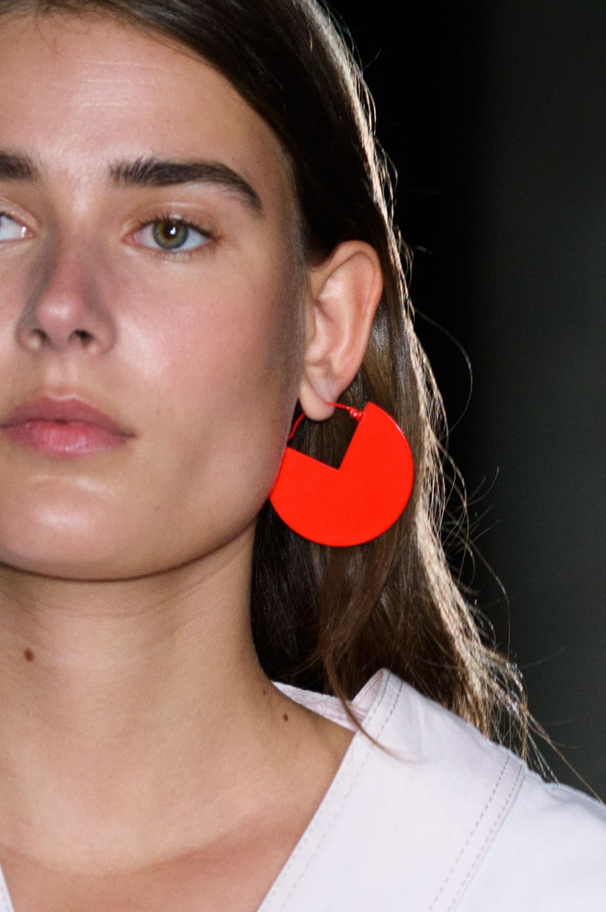 Boucles d'oreilles géométrique rouges du défilé Isabel Marant printemps-été 2017 à Paris