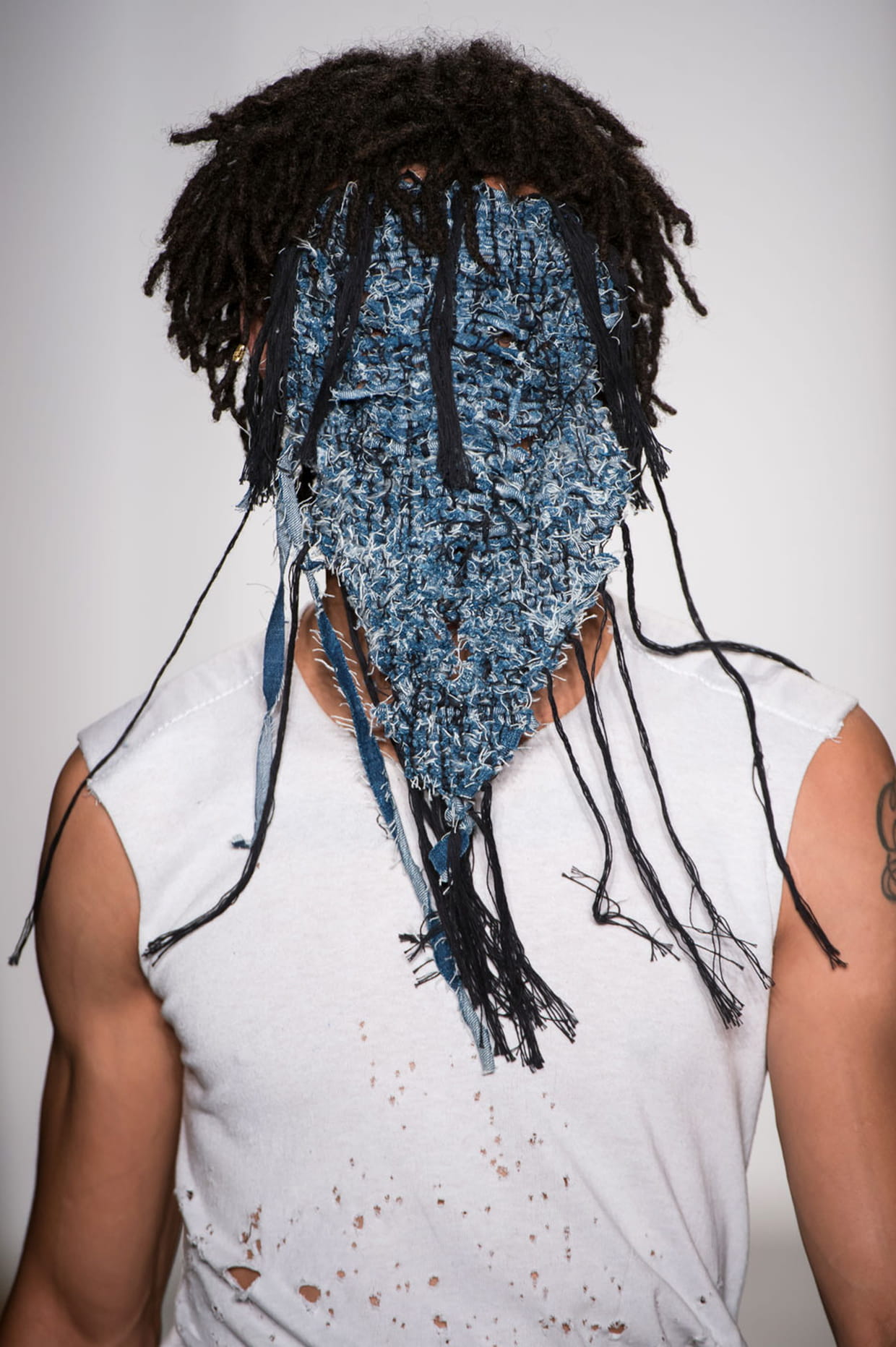 Le masque denim du défilé de la Parsons School prêt-à-porter printemps-été 2017 à New York