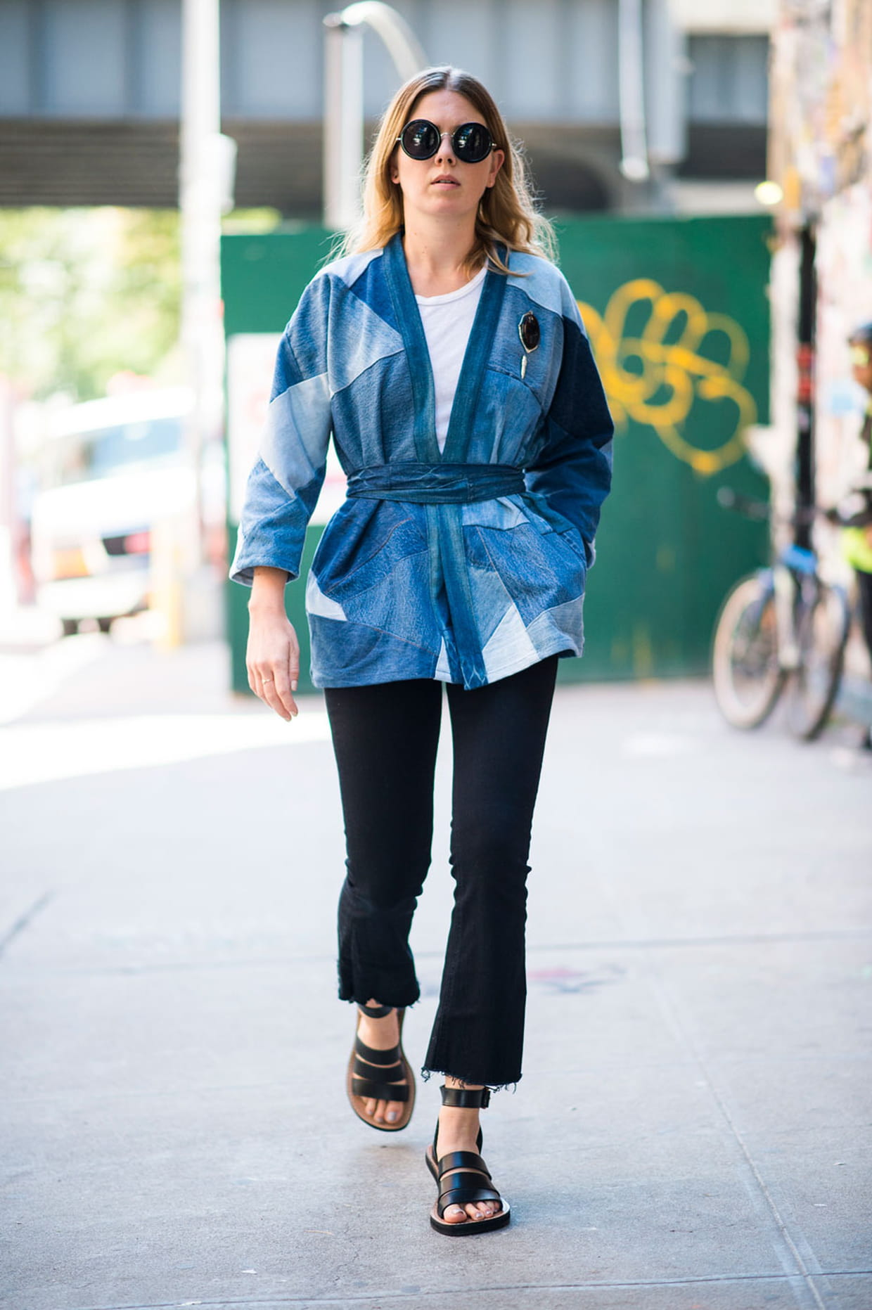 Le kimono denim à la sortie des défilés prêt-à-porter printemps-été 2017 de New York