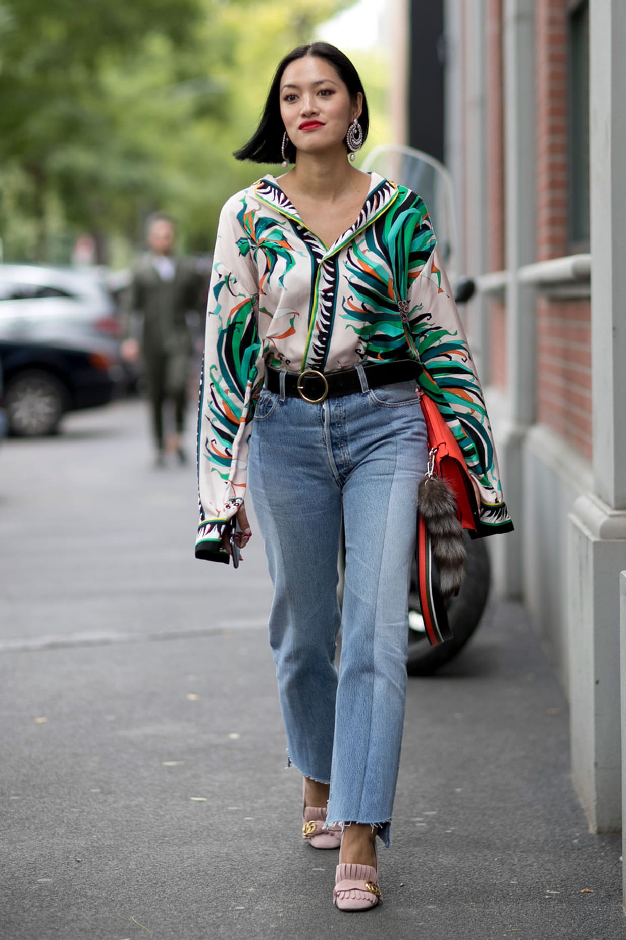La chemise ouverte à la sortie des défilés prêt-à-porter printemps-été 2017 de Milan