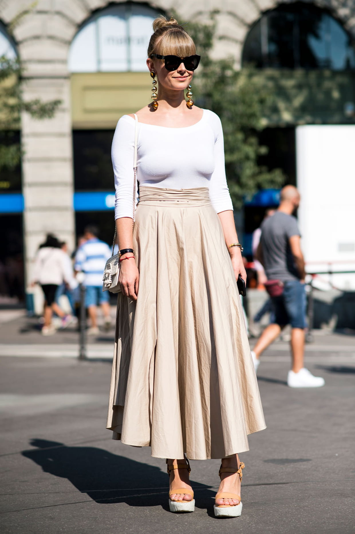 La jupe midi à la sortie des défilés prêt-à-porter printemps-été 2017 de Milan