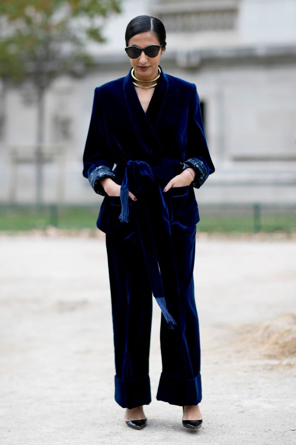Le total look velours à la sortie des défilés prêt-à-porter printemps-été 2017 de New York