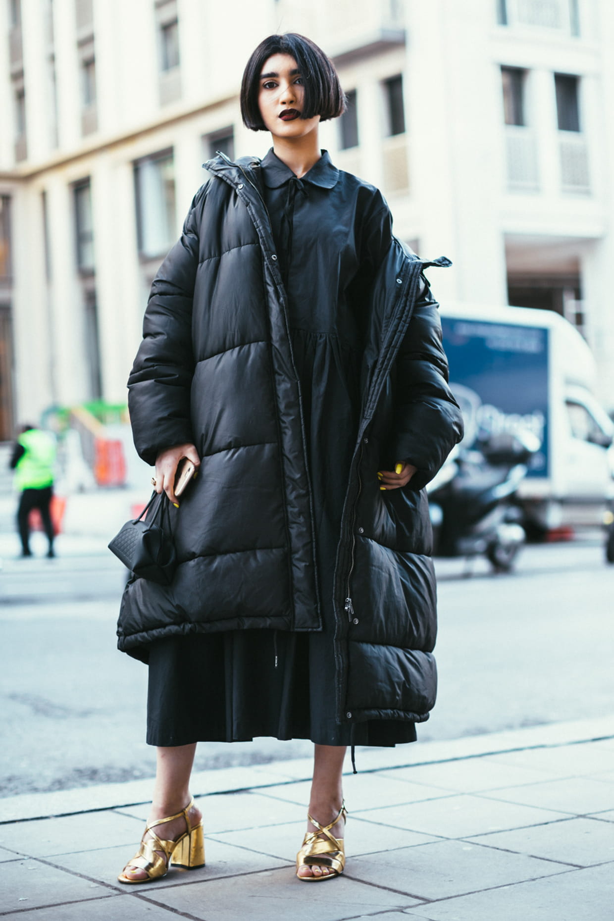 La doudoune duvet  aux abords des défilés de la fashion week de Londres automne-hiver 2017-2018