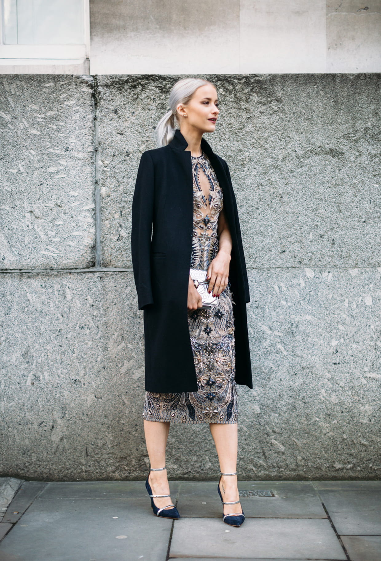 Le chic manteau noir aux abords des défilés de la fashion week de Londres automne-hiver 2017-2018