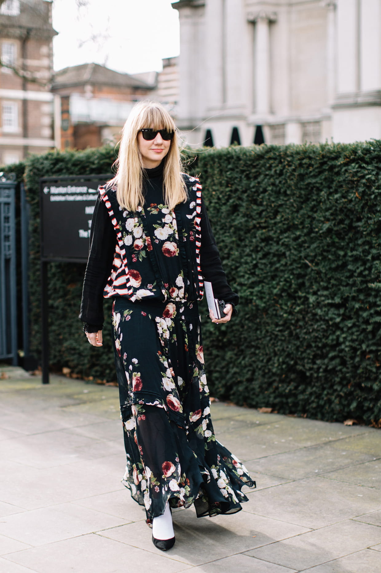 La robe fleurie  aux abords des défilés de la fashion week de Londres automne-hiver 2017-2018
