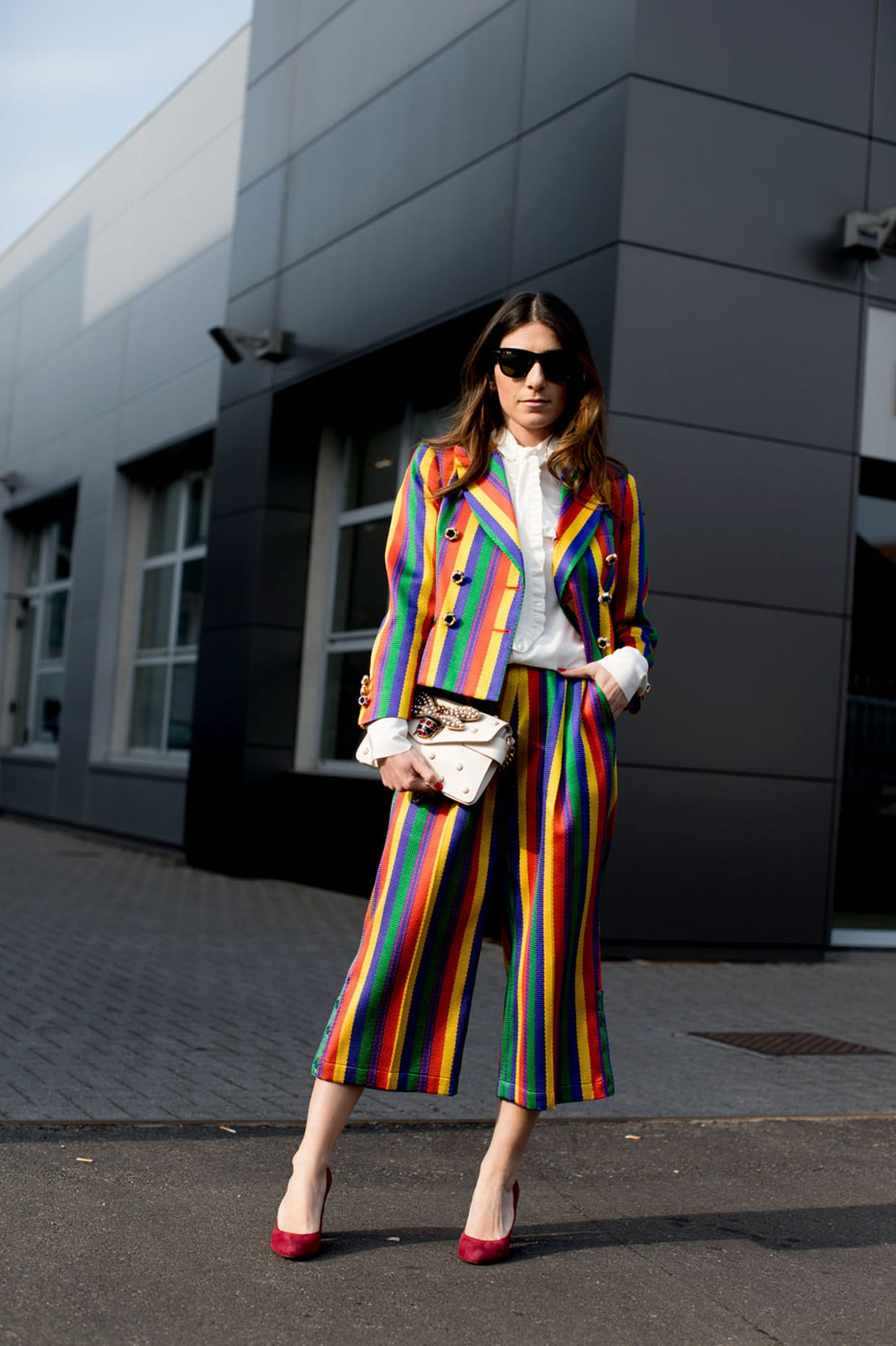 Les rayures colorées aux abords des défilés de la fashion week de Milan automne-hiver 2017-2018