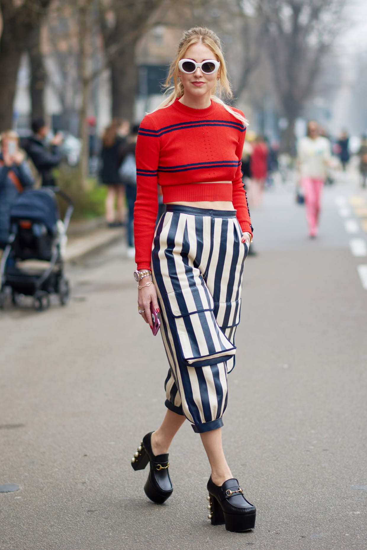 Le mariage des rayures aux abords des défilés de la fashion week de Milan automne-hiver 2017-2018