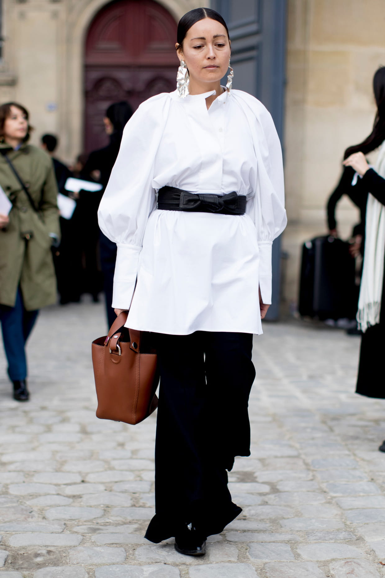 La chemise blanche star aux abords des défilés de la fashion week de Paris automne-hiver 2017-2018