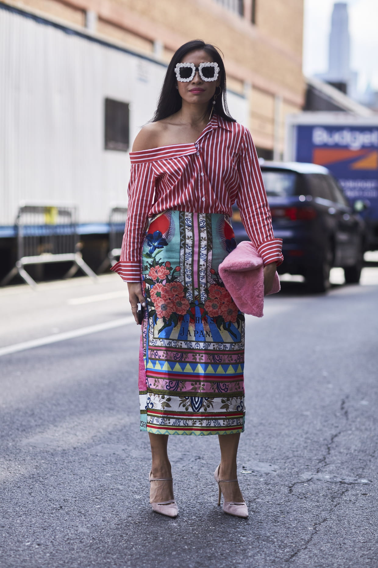 La chemise rayée repérée aux abords des défilés printemps-été 2018 lors de la fashion week de New York