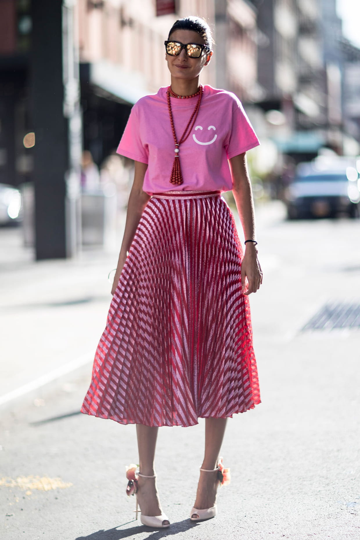 Le rose shocking repéré aux abords des défilés printemps-été 2018 lors de la fashion week de New York