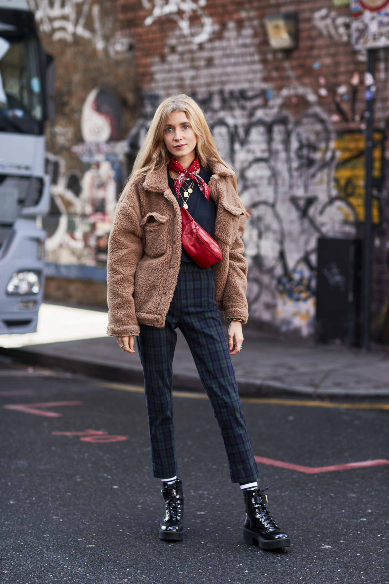 La veste mouton repérée aux abords des défilés printemps-été 2018 lors de la fashion week de Londres